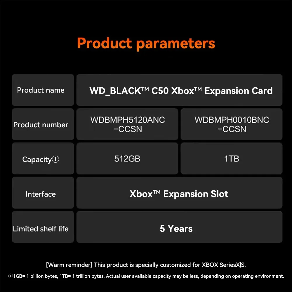 Western Digital WD BLACK C50 1TB 512GB Solid State Drive Expansion Card Memory Card for PC Xbox Series X Series S Resumen rápido